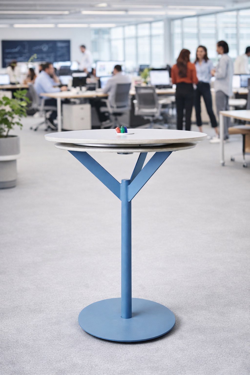 CoCreate distinguishes itself from conventional meeting tables by integrating a rotating writable surface directly into its structure, transforming the table itself into an active collaboration tool rather than a passive surface. It addresses the common issue of fragmented idea-sharing, where whiteboards and work tables are separated, slowing down spontaneous interaction. By centralizing visual thinking within the workspace, it promotes equal participation, fluid communication, and more dynamic teamwork.