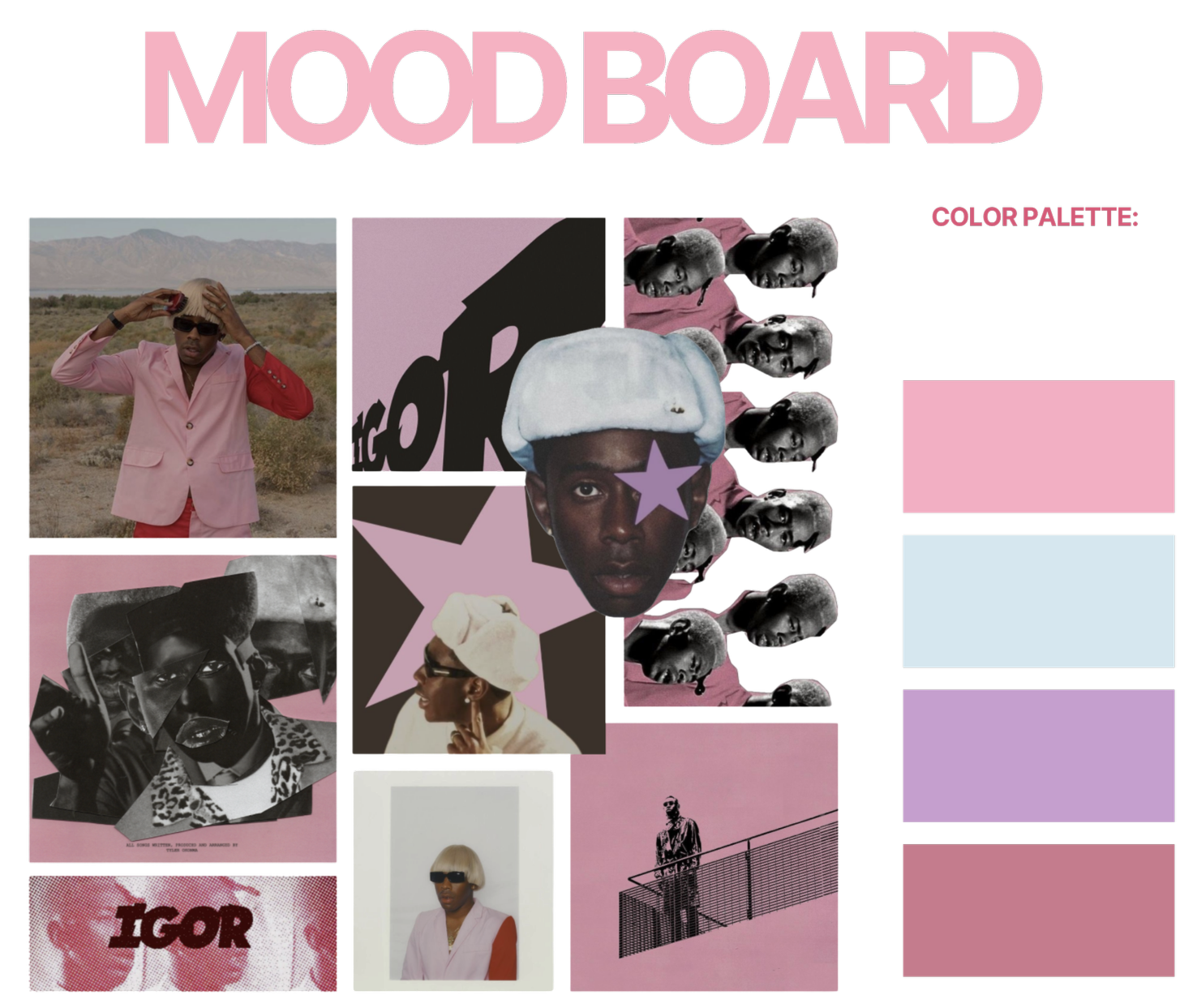 The mood board is inspired by the aesthetic of IGOR and its color palette.