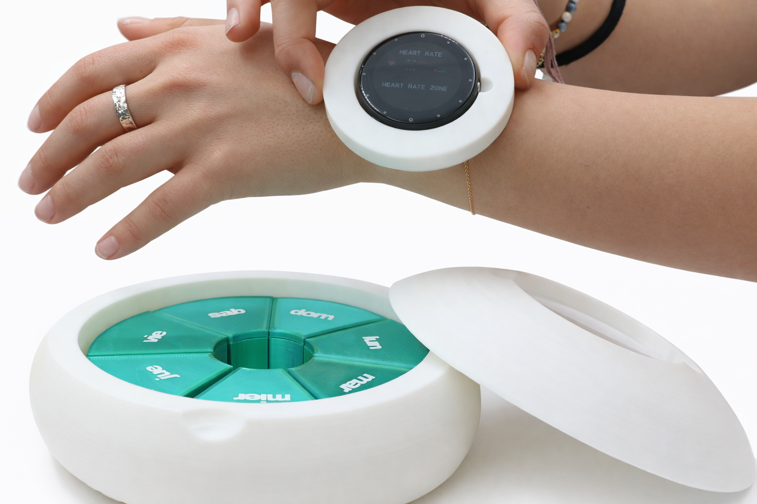 Capsulife was developed through a combination of digital modeling and hands-on prototyping. I designed the components digitally to define proportions and the compartment system, then fabricated the prototype using 3D printing. Each piece was manually assembled and refined to ensure proper fit and intuitive interaction. The top housing was designed to integrate electronic components while maintaining a clean, cohesive look.
